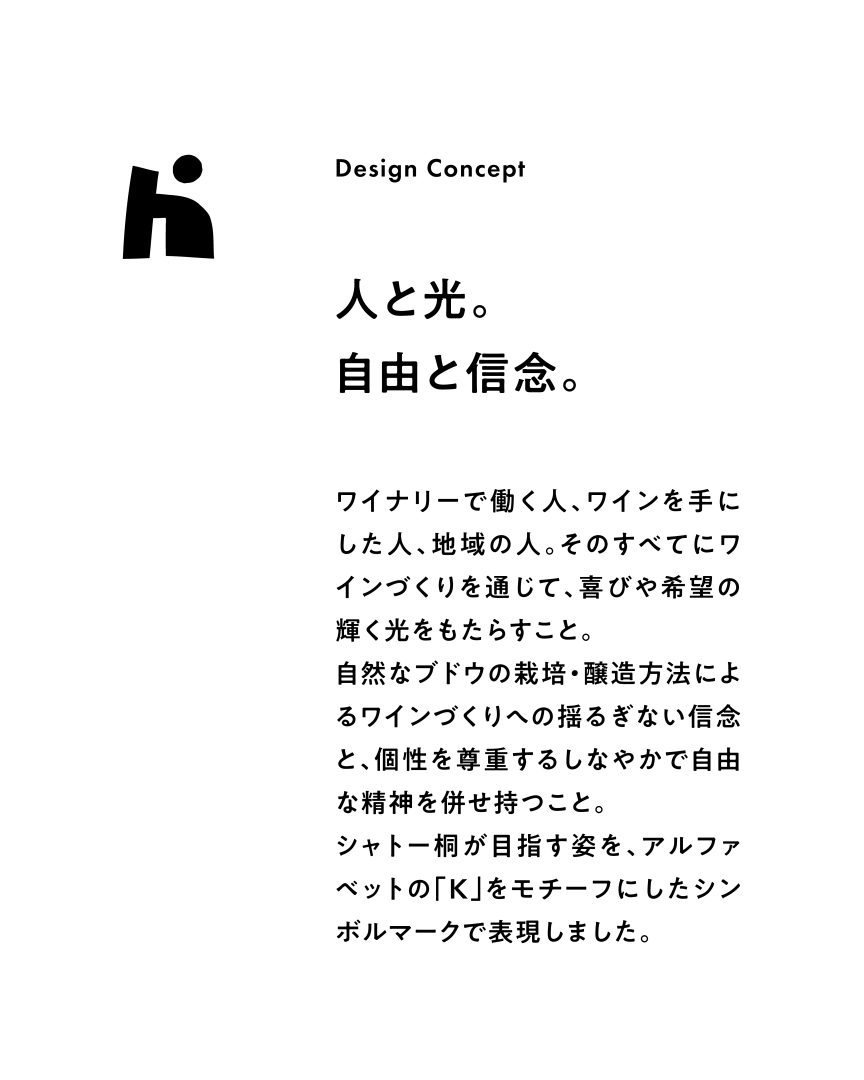 CHATEAU KIRIが目指すそんな姿をイメージしながら、アルファベットの「K」をモチーフにしたシンボルマークで表現しました。